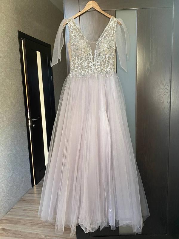 Индивидуальная работа, вручную вышитый корсет, атласный подъюбник. Платье надевалось только на торжественную часть-вручение аттестата(буквально 2-3 часа), химчистка не нужна, чтобы юбка доразгладилась достаточно повесить в ванную после принятия душа. Мои парметры: ОГ - 90 см ( грудь небольшая, для девушек с маленьким корпусом и большей грудью будет отлично, корсет все держит, вшита чашка) ОТ - 65 см ОБ - 98 см (в бедрах платье не облегает) Доп. видео/фото вышлю по желанию. В Харькове возможна примерка, а так же уместен разумный торг.