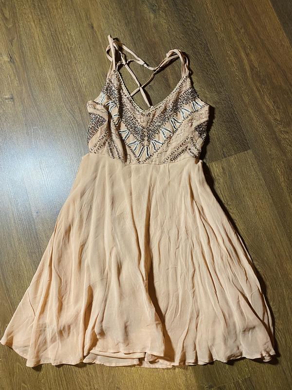 Вечернее платье , вышито бисером ) легкое , романтичное с открытой спинкой ссади переплеты шлейками на спинке