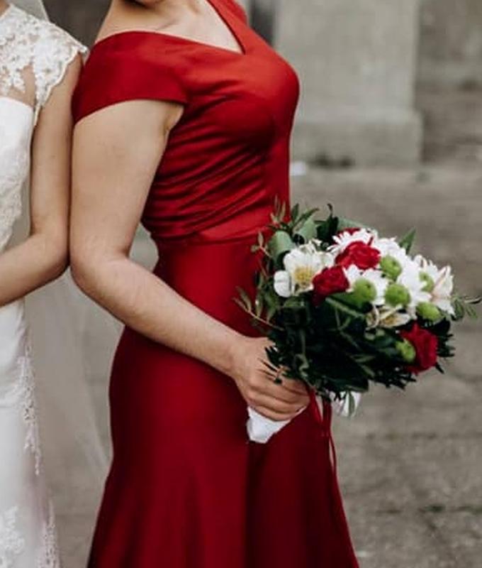 Продаю довгу вечірню сукню. Матеріал - атлас. Розмір М. Зріст 1.55 Колір - темно-червоний. Пошита на замовлення. Вдягала один раз.