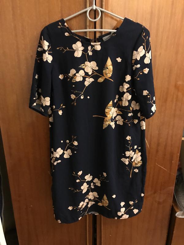 Сукня у темно синьому кольорі на підкладці, прямого крою Довжина 92 см Напівобхват грудей - 50 см Талія - 52 см Стегна - 54 см