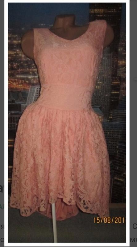 Плаття гіпюрове персикового кольору р. С-М в чудовому стані. Збоку защіпається на замок. Заміри: ПОГ = 44 см ПОТ = 33 см Довжина спереду 80 см, ззаду 110 див.