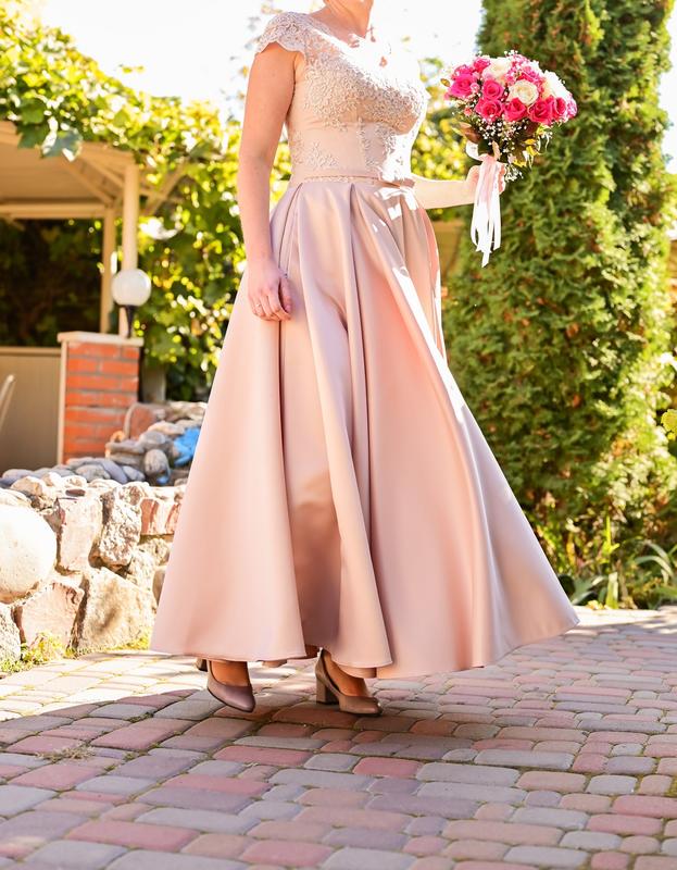 Продаю гарну святкову сукню бежево-персикового кольору в ідеальному стані. Одягалась один раз, без дефектів та ньюансів. Розмір 44 (буде на 42-46 розмір). На фото одягнена на 48 розмір Прикрашена мереживом. Ззаду на замочку та шнурівці. Є кишеня. Заміри: довжина від талії 100 см висота корсету від плеча до талії 46 см Загальна довжина 146 см ПОТ 39