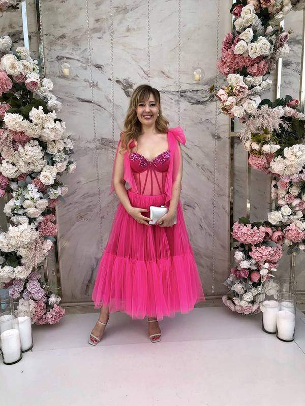 Продам нарядное платье для важных мероприятий. Корсет регулируется, завязочки тоже. Бант делаете такой какой Вам нравится. Камни сваровски. Чашечка - 2В. Размер M - L.