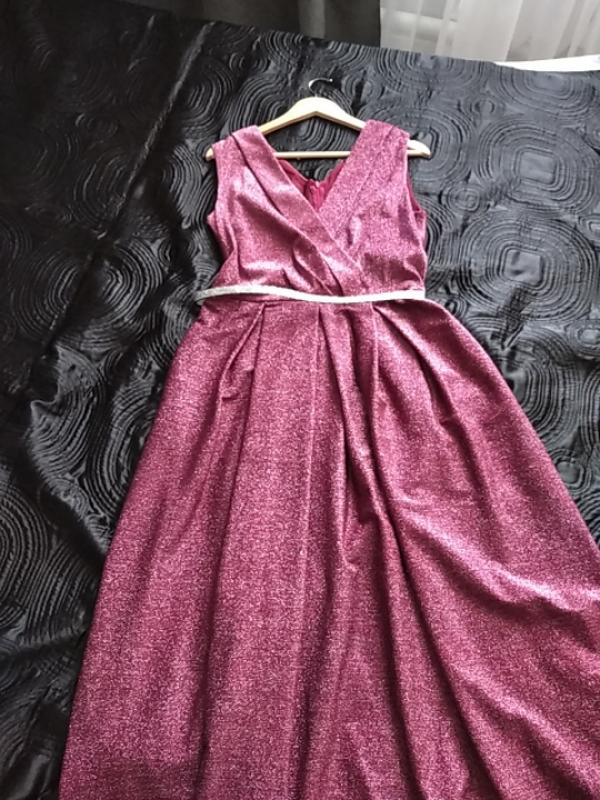 Неймовірно гарне шимерне плаття у бордовому кольорі, одягалося один раз. Є кишеньки та пояс. Всі додаткові заміри надішлю)