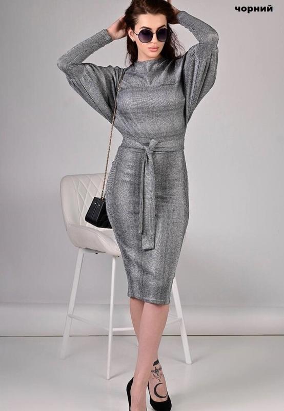 Шикарное платье. Отлично стройнит. Рукавчик полулетучая мышь. Ткань с люрексом. Тянется. Есть поясок. Новое, остаток с магазина. Без дефектов и нюансов. ОГ не больше 120 см ОТ 84-100 см ОБ 100-112 см Рукавчик от горловины 78 см Длина 121 см