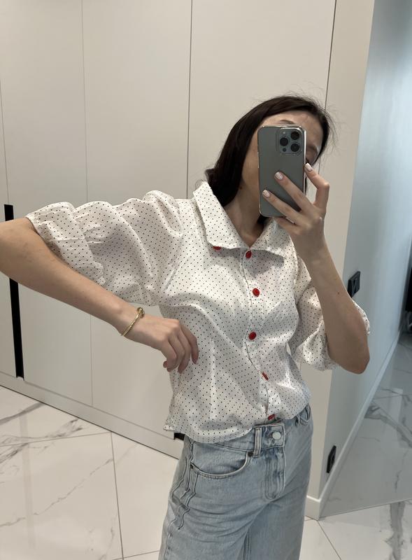 Блуза белая в горошек Happie loves it, состав 100% коттон, размер xs.