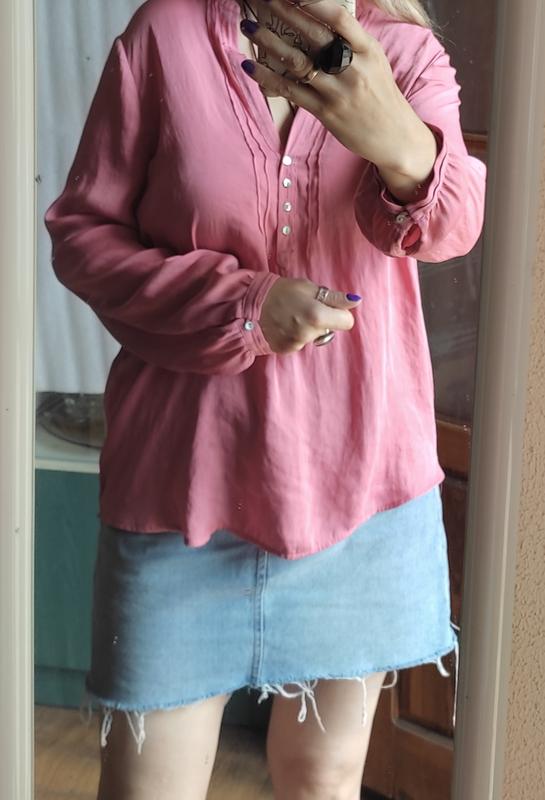 Блузка очень хорошего качества, приятная к телу хоть и полиэстер по осушением не скажешь, ог-55см, талия 55-см, длина -67см