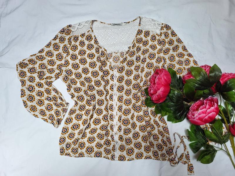 Легка котонова блузка,бренду Nina Kaufmann. Низ стягується на зав'язку.Заміри запитуйте перед оплатою.