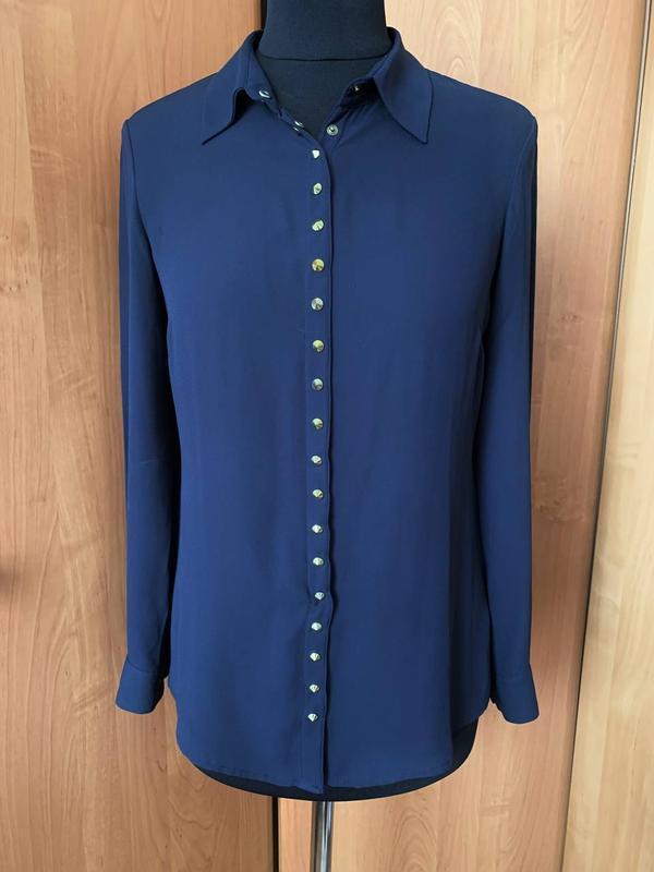 Темно-синяя блуза Mango, оттенок ближе к чёрному, легкая. Застегивается на золотые кнопочки. Под проймами 46 см, длина по спинке 70 см, плечи 40см длина рукава 57 см