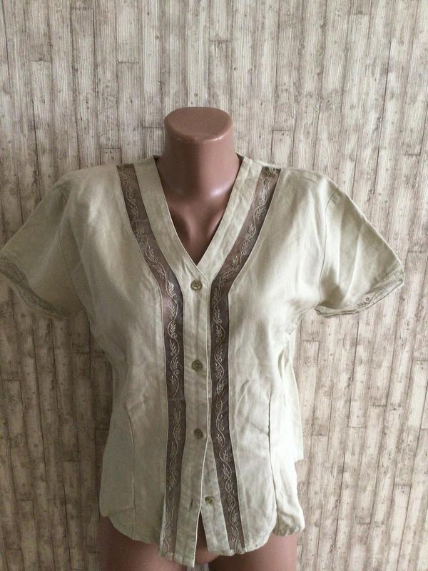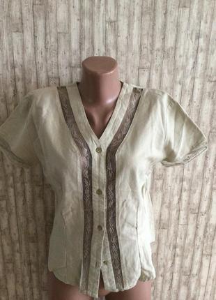 Лляна з бавовною блуза з мереживом - декором! Довжина 57, пог 50, рукав 15, по низу 45, розріз 8