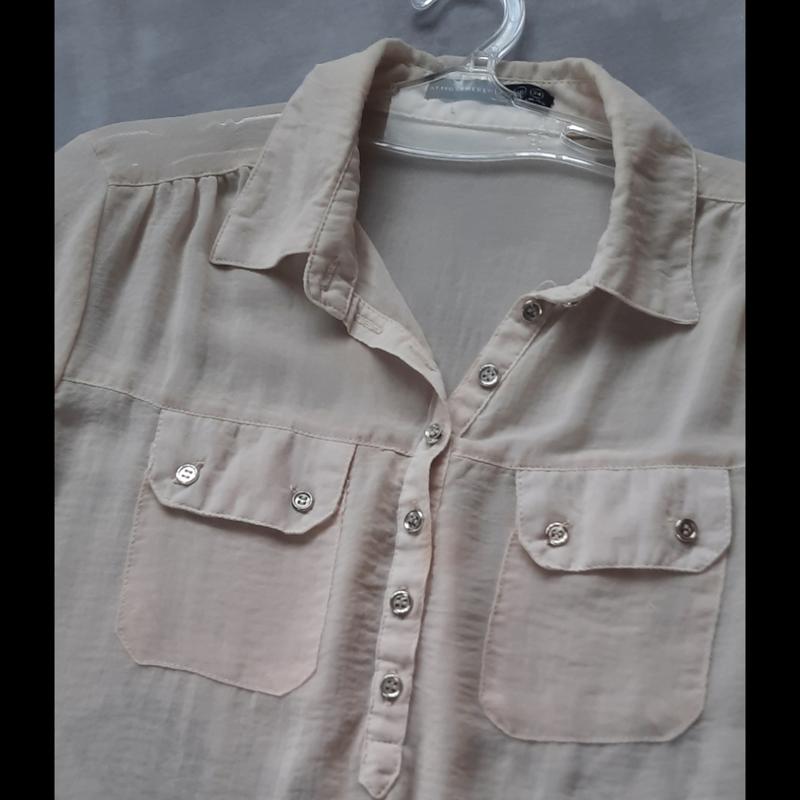 Легенька повітряна блузочка пудрового кольору(третє фото). Рукавчик можна регулювати за допомогою лямок. В ідеальному стані. Плечі 38 Пог 50 Поб 52 Довжина 68 Рукав 61