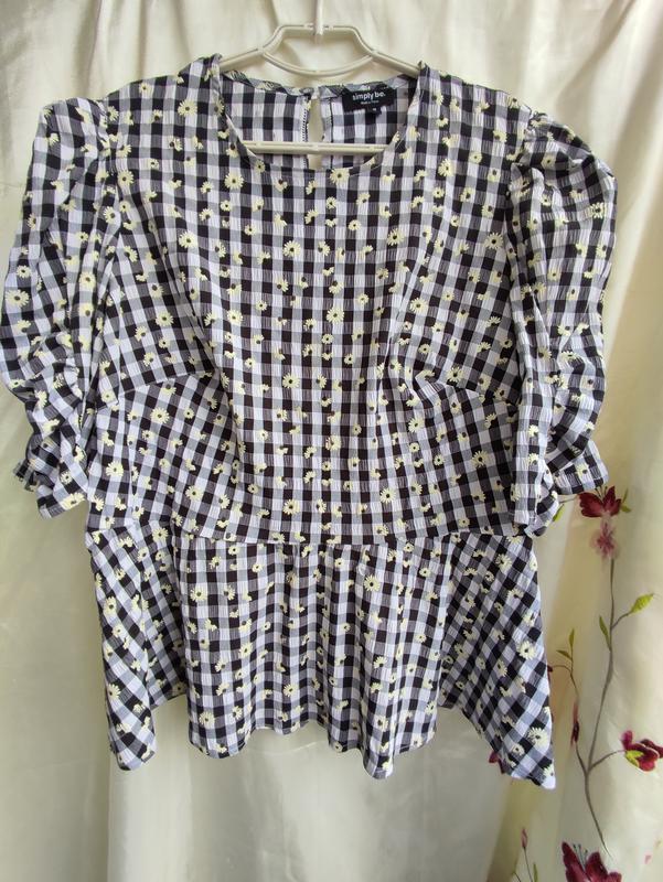 БЛУЗА В КЛІТИНКУ З МОДНИМИ РУКАВАМИ ПОГ 58 ПОТ 55 ПОБ 67 Д 66