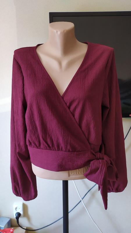 Блуза на запах яркого винного цвета.Пог-51,длина-48.Тянется.