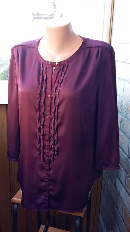 без дефектів, прямий крій, плече 43 см, ПОГ 51,5 см, виточка 10,5 см, ПОТ 49 см, низ 54 см, рукав 45 см, довжина 62 см.