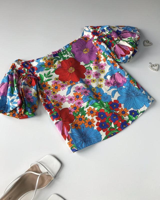 Блуза в яскраві квіти H&M з відкритими плечима Розмір 4/xs Заміри: пог-44 довжина-45см котон новий стан