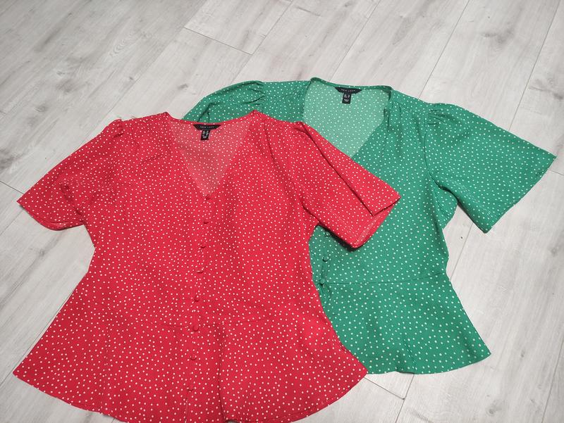 Яскрава червона блуза в горохи,фірми New Look,розмір 12