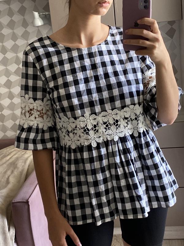 Жіноча блуза в клітинку з мереживними вставками