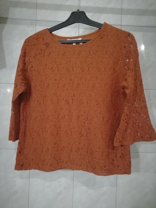 Нарядная гипюровая блуза на трикотажной подкладке, длина от плеча 53 см, ширина 47 см, рукав 3/4 длина 41 см, на размер 38/40