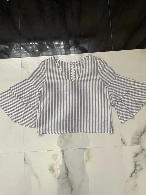 Блуза сине – белого цвета, никаких нюансов нет, рукав три четверти, на бирке размер хс, однако я носила на свой размер – с.