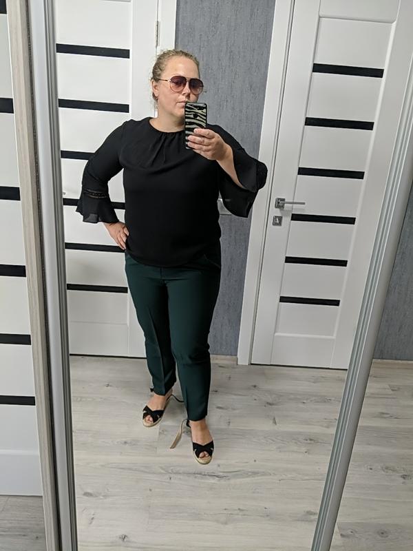 Iдеальна для жінки з формами. Чорний колір та прямий крій робить фігуру стрункішою. Розмір 16, на фото я в розмірі 16-18.