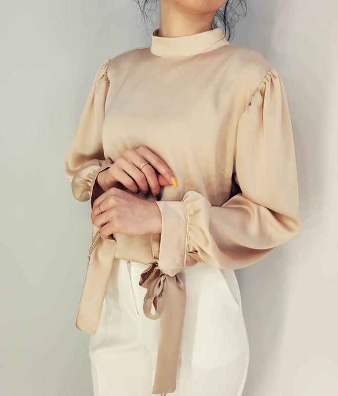 Блузка жіноча, із завязками на рукавах. Колір : беж. Розмір: M-L