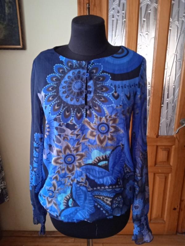 Довжина 69 см. Напівобхват по грудям 46 см. Довжина рукава 62 см. Плечі 36 см.Тонка шифонова тканина.