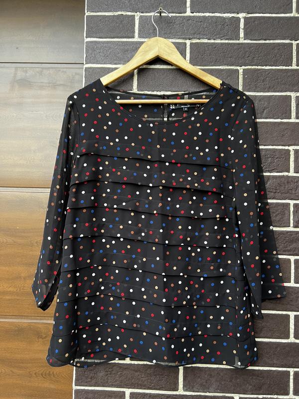 Блузочка чорного кольору в горошок .Розмір М-Л.Стан ідеальний В моїй шафі часті поповнення брендового одягу. При покупці більше ніж 2-х речей доставка безкоштовна🌸 Підписуйтесь, щоб бути в курсі всіх новинок ,також за підписку можлива знижка на будь яку річ❤️ Доставка Новою Поштою, Укрпоштою Justin та Меest. Є накладений платіж з передоплатою за доставку. На всі Ваші запитання відповім максимально швидко і з задоволенням та зроблю додаткові фото та заміри ;) Приємного шопінгу;)