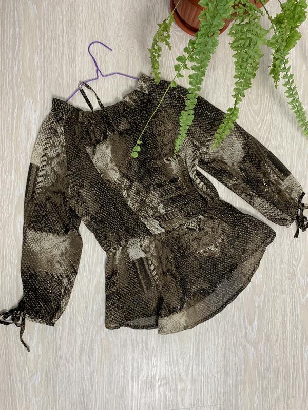 Легенька блуза. На плечах і рукавах є розрізи вирізи, виглядає дуже стильно. Одягалась 1 раз, стан ідеальний.