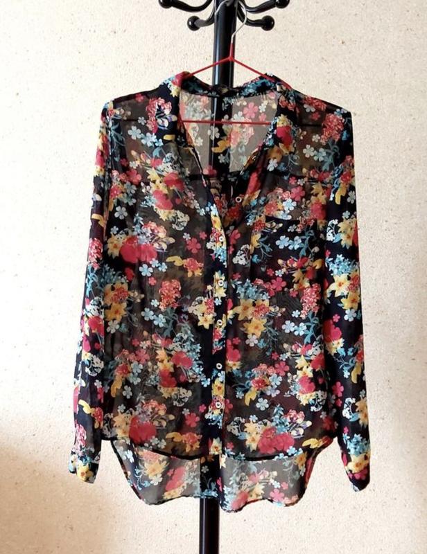 Блуза шифонова в квітковий принт на ґудзиках