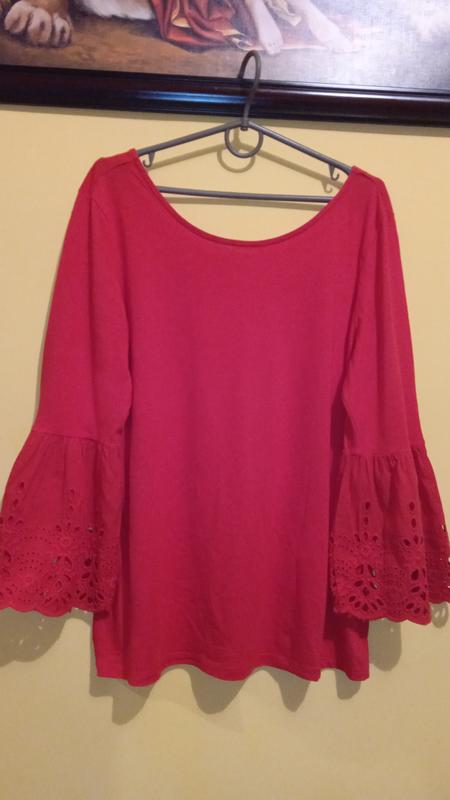 Шикарна блузка в ідеальному стані, з класнючим вибитим рукавом. Довжина від плеча 63см. Пог 52 см. Рукав 51см. Оплата на карту.