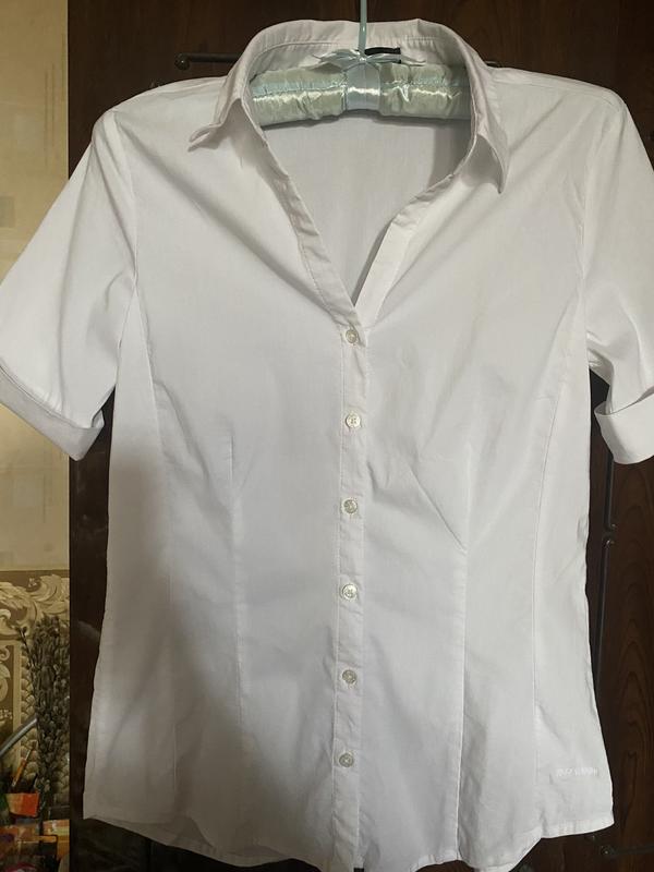 Біла блуза з v-образним декольте, на ґудзиках з коротким рукавчиками
