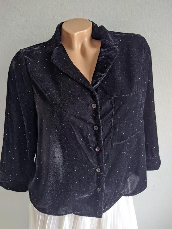 Блуза, короткий жакет на гудзиках, на грудях карман, рукав 3/4, класичний крой, розмір европейський 40, виміри: довжина - 50 см, плечі - 38 см, ПОГ - 50 см, довжина рукава - 41 см. ПОВЕРНЕННЯ та ОБМІНУ ТОВАРУ НЕМАЄ!