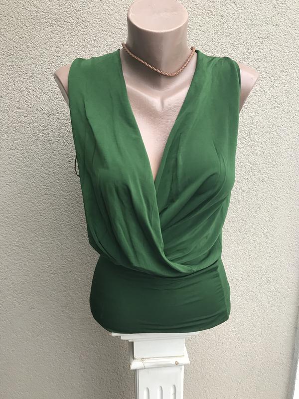 Красивая,зеленая,стрейчевая блузка на запах,вискоза, max mara люкс бренд