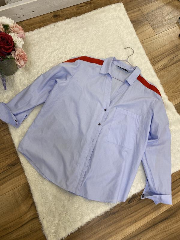 Блуза в блакитному кольорі зі червоними вставками та фурнітурою Можно робити четвертий рукав В розмірі S але вона підійде також на M ⚠️оригінал ⚠️