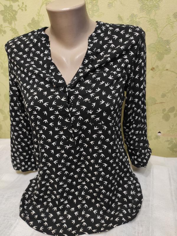 стильна блузочка Atmosphere принт ласточки розмір XS-34-6 Стан нової сток. Заміри довжина спереду 60см ззаду 70см, напівобхват під руками 44см. довжина рукава 43см Ціна 170 грн. торг дивіться інші мої оголошення