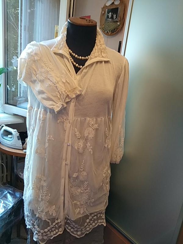 Трикотажная блуза молочного цвета с кружевом королевского 24 разм.евро(укр58 до62)