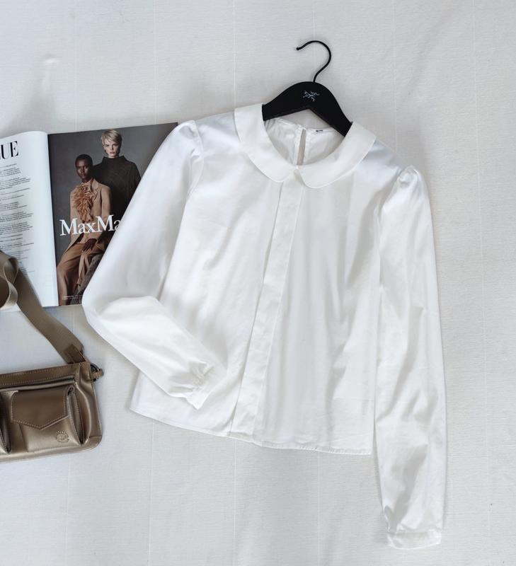 🌿біла блуза з круглим комірцем вільного крою Розмір:S Заміри:ПО грудей 50 см, довжина 52 см, довжина рукава 58 см Склад:котон