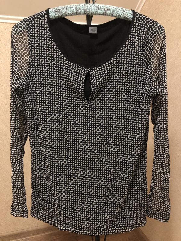 Кофтинка має підкладку, на рукавах прозора, без дефектів і затяжок. Низ на легкій резинці. Тканина поліестер. Розмір 12, на наш 44-46