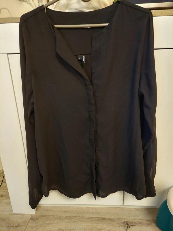 Легенька блуза. Комірець стійка, сховані ґудзики. Злегка просвічується.