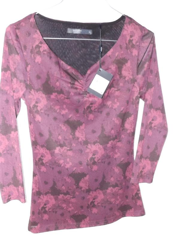 Милые кофточки бренд: "Manguun", Германия. Все идут из ценниками 14,99 евро и бирками. Полиамид (polyamide) - это волокно синтетического происхождения, при этом пропускающее воздух, быстросохнущее, маломнущееся, материал с которым мы постоянно сталкиваемся в быту. Вещи из полиамида прекрасно и довольно долго сохраняют свой первоначальный товарный вид, поскольку данный вид синтетики особенно устойчив к изнашиванию и состоит из волокон высокой прочности. Снизу идёт сеточка, не просвечивается. Рукав 3/4, около 48 см. Замеры в спокойном состоянии, тянется ткань хорошо. ПОЛНОМЕРКИ. 34 - ПОГ 39 см, ширина плеч 37 см, длина 61,5 см 1 шт. 36 - ПОГ 40 см, ширина плеч 37,5 см, длина 62 см. 38 - ПОГ 40,5 см, ширина плеч 37,5 см, длина 62,5 см. 40 - ПОГ 41 см, ширина плеч 39 см, длина 63 см. 42 - ПОГ 44,5 см, ширина плеч 40 см, длина 64 см. Цвет: Фиолетовый, Розовый. Состав: 100 % Полиамид.