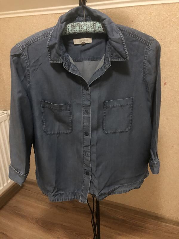 Укорочена блузочка під спідничку або штани з завищеними таліями, колір джинсовий, матеріал ліоцел. Рукав 3/4, без дефектів, стан нової. Розмір 46, заміри надам.