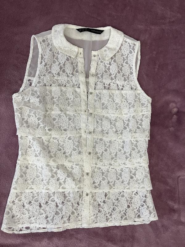Легка, невагома, ніжна, напівпрозора блуза від Zara. Пуговки сяють як діаманти, нажаль фото не передає. ШП 33см ПОГ 41см Довжина 55см