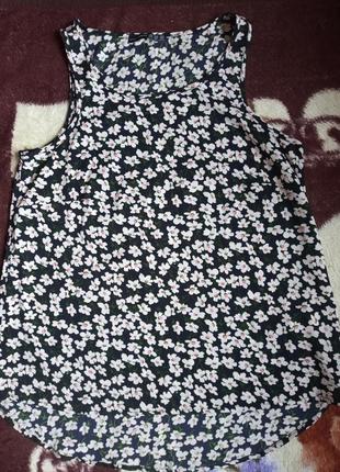 Літня блузка у квітковий принт. Стан ідеальний. Довжина блузки - 67см. Напівобхват грудей - 46см. Вона дуже вільна, не в обтяжку. Ззаду трішки подовжена. Дивіться також інші мої оголошення 😊 Всім приємних покупок)