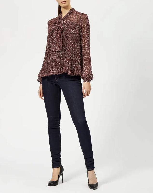 Блуза метелик з квітковим принтом з плесерованої тканини на підкладі, на шиї функціональний галстук, рукавчик з манжетом на ґудзику. Тонкий шарф був на всіх під час Тижня моди. До теперішнього часу це справжня тенденція, друзі, і немає сенсу чинити опір. Блузка з тонким шарфом- це тенденція зараз - якщо зав'язаний на бант- це не ваш стиль, залиште його вільно спадаючим, як це зробила Модель на останньому фото. Довжина 63 Плечі 36 ПОГ 50 Рукав 65