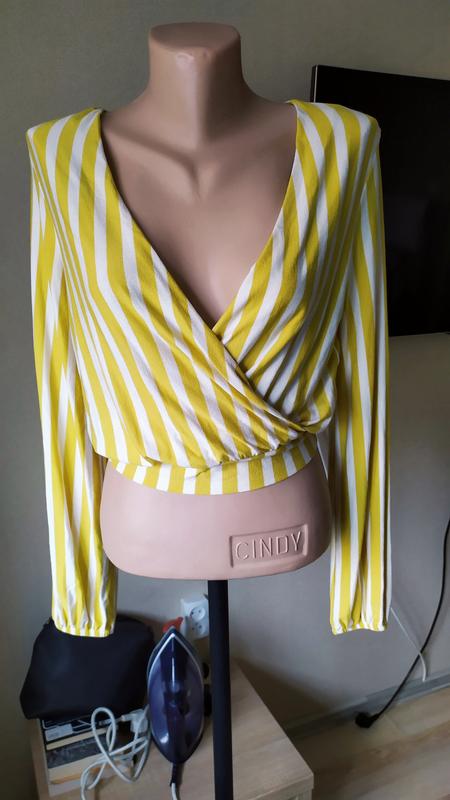 Эффектная блуза на запах в состоянии новой.Подойдет на S,M точно..Гарный состав материала Пог-43,пояс-33,длина-47