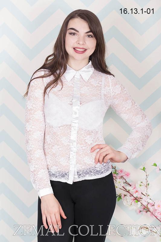 Женская блуза из гипюра с атласной отделкой В отличном состоянии ТМ ZEMAL, Украина Размер указан 42. Состав: полиэфир 95%, полиуретан 5% Экстравагантная блуза с классическим отлетным воротиком, узкими манжетами из сатин-коттона.