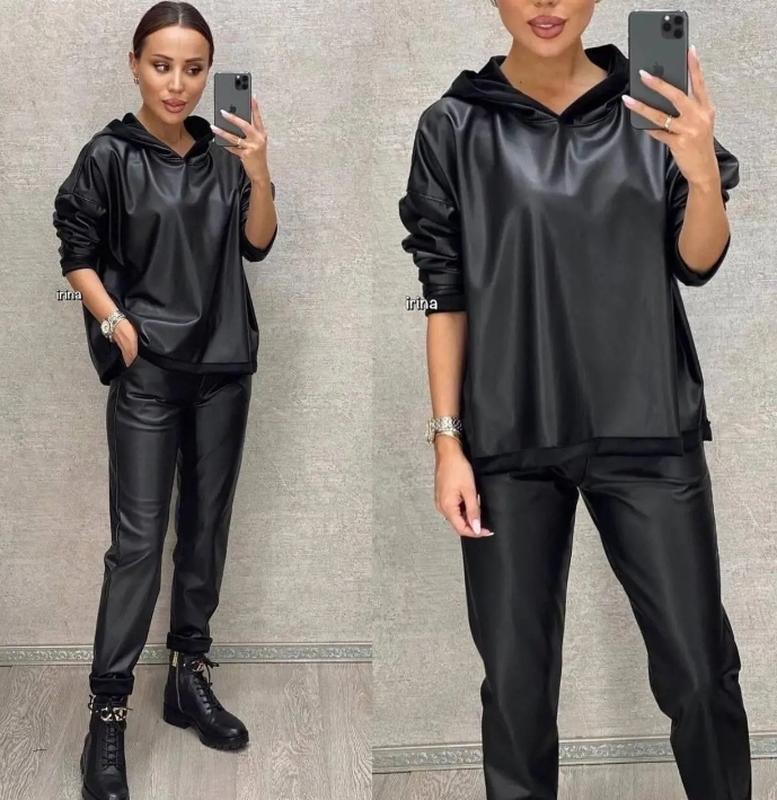 Материал: Эко кожа на искусственном меху/флиссе Цвет: Черный. Оттенки могут отличаться. Размер: S-M. L-XL Длина брюк 102 см Длина кофты 68 см Длина рукава 65 см SM на ОГ до 95, ОБ до 95 LXL на ОГ до 105, ОБ до 105 просьба уточнять наличие размеров нольделяттричетырешим-симтринюльсимаймер