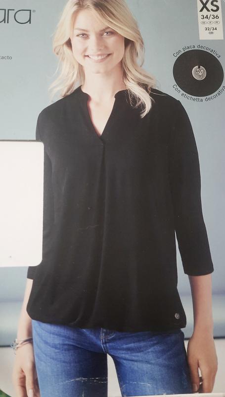 Esmara туника. Рукав три четверти. Эластичная резинка внизу. Размер XS (32/34), наш 40. Цвет черный. Полуобхват груди 44см, длина рукава 3/4 42 см, длина по спинке 63см.