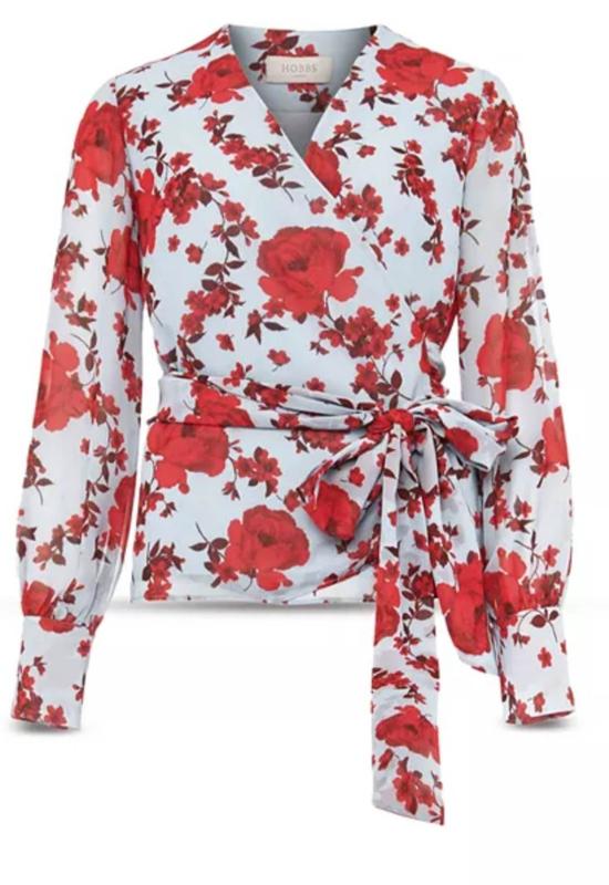 Красивейшая небесно голубая блуза на запах в яркий цветочный принт hobbs