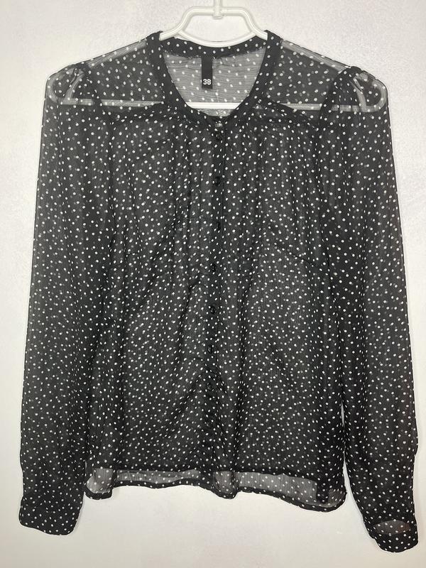 Чёрная блуза в белый горошек бренда H&M. Состояние идеальное, размер М(38). Ткань просвещается . Длина рукава 67 см Длина 62 см Ширина 49 см